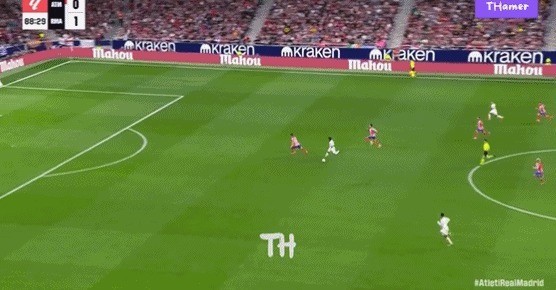 皇马后场得球,组织起反击。卡瓦哈尔一脚直传,将球送到恩德里克眼下。皇马此次反击高出迅猛,马竞来不足叮属防地。恩德里克衔枚疾进,左翼的贝林厄姆高速插上,造成策应点。