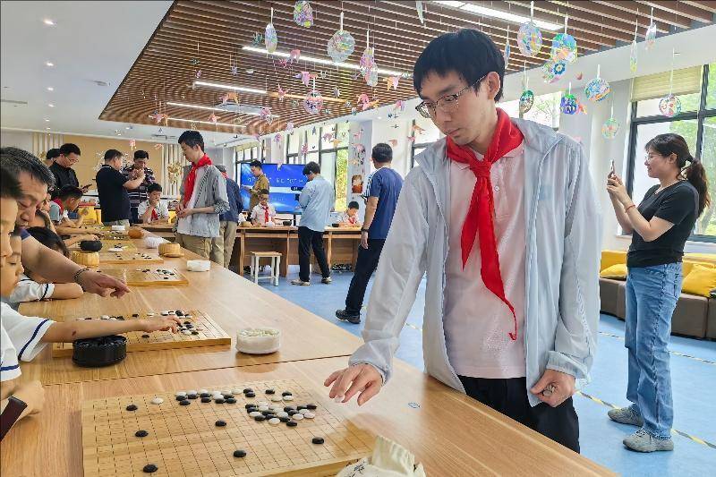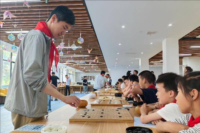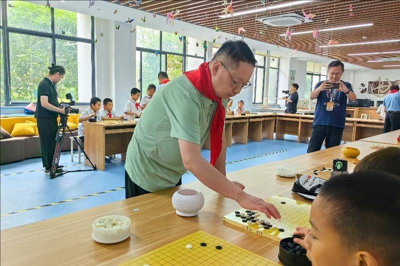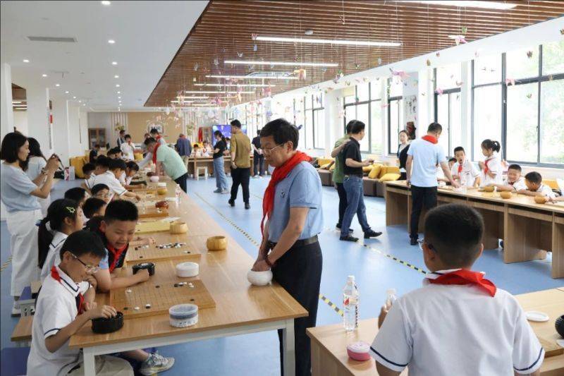 带领棋活动现场。东谈主民网长兴5月29日电 5月28日,2025年三国赤壁古战场杯中国围棋甲级联赛“传承国学 乐在棋中”围棋进校园带领棋活动在浙江长兴履行小学龙山校区举行,中国围棋协会名誉主席王汝南、华以刚,作事棋手李星六段、成齐队教授李亮五段、深圳聂谈厚势队教授李康六段、苏泊尔杭州队教授汪涛六段、浙江浙商证券队教授蓝天四段过问了活动,与学生们进行了多面打带领棋相似。(东谈主民网记者 李乃妍照相报谈)