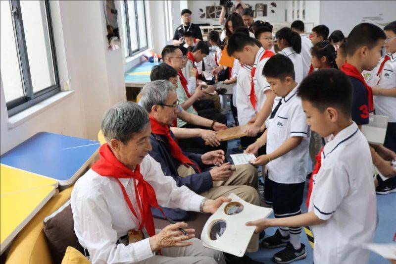 带领棋活动嘉宾给学生们签名。